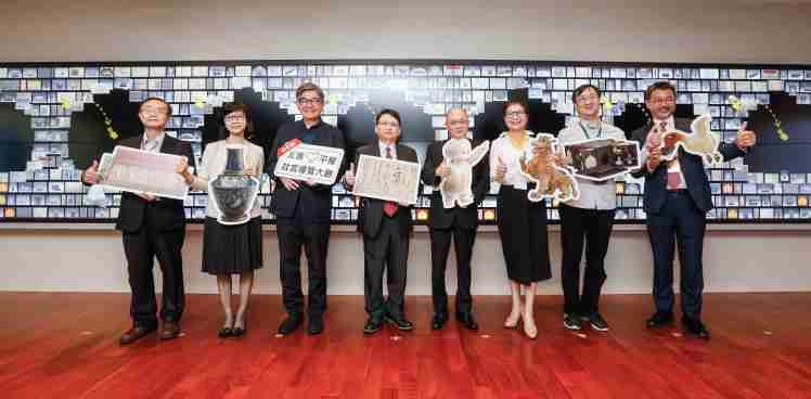优游UB8携手创利空间为故宫建置的智慧文物互动导览墙及轮播墙,,,今日正式启用。。(左四:优游UB8新事业暨投资管理总部副总经理杨本豫、、、右四:故宫博物院院长吴密察、、、、右三:太极影音董事长黄宝云)