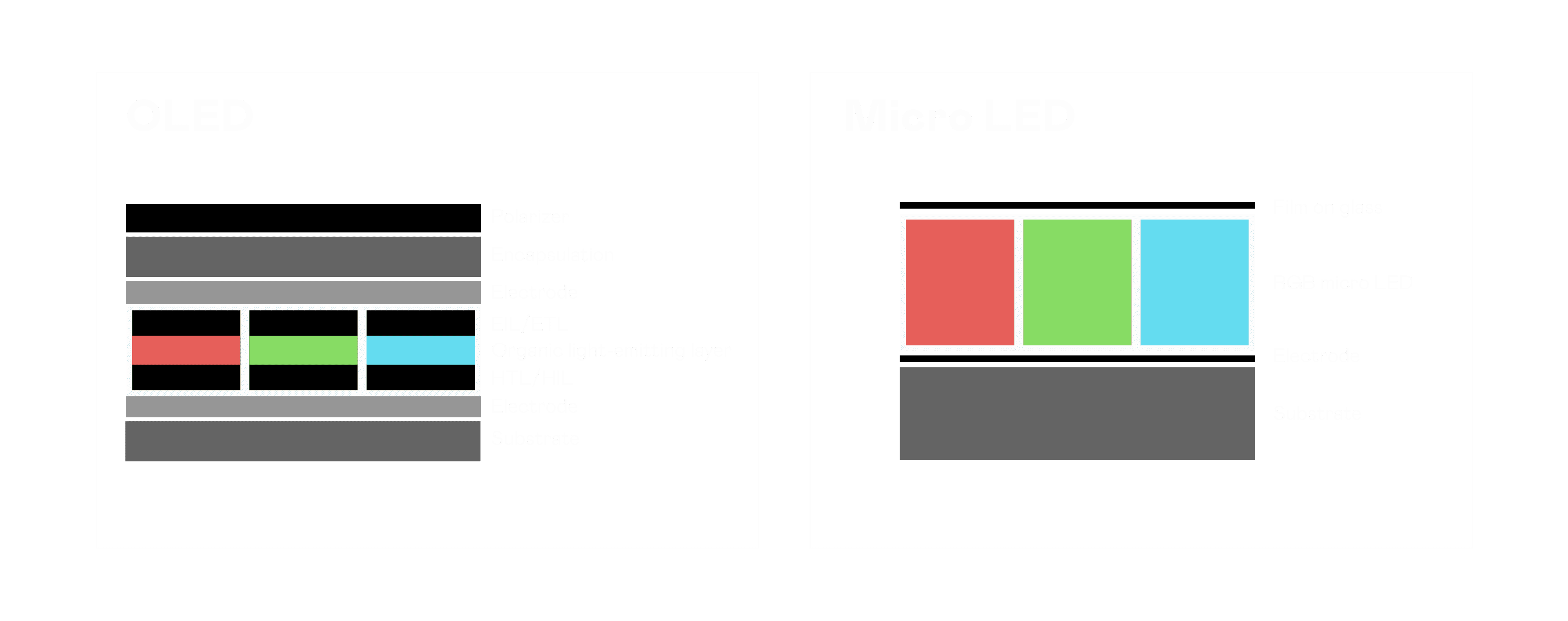 以 LED 做为显示画素,,,,可让 LED 的发光效率发挥到极致,,从而让显示器具备优异的亮度表现,,,,不论是在户外或室内,,,,均具备出众的显示效果。。。同时,,,,与使用有机材料的 OLED 相比,,,,LED 具备更稳定、、、、寿命更长的特性,,,,不仅不会有画面烙印问题,,而且更不容易出现故障、、、、坏点。。