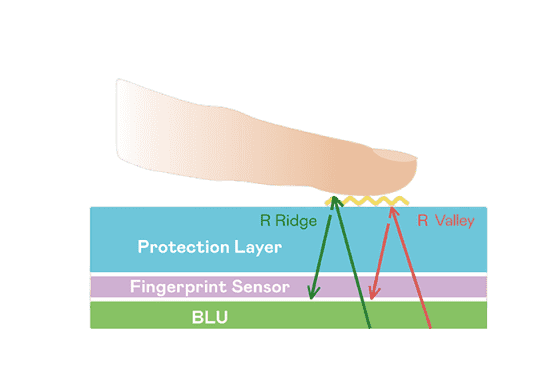 TFT 指纹扫描感测技术利用薄膜电晶体 (TFT) 当作光感测元件,,,藉由非晶硅 (a-Si) 与低温多晶硅(LTPS)既有光电转换特性对不同波段光源进行吸收,,使感测 IC 读取阵列感测元件的光漏电差异,,转换成数位灰阶影像。。。。