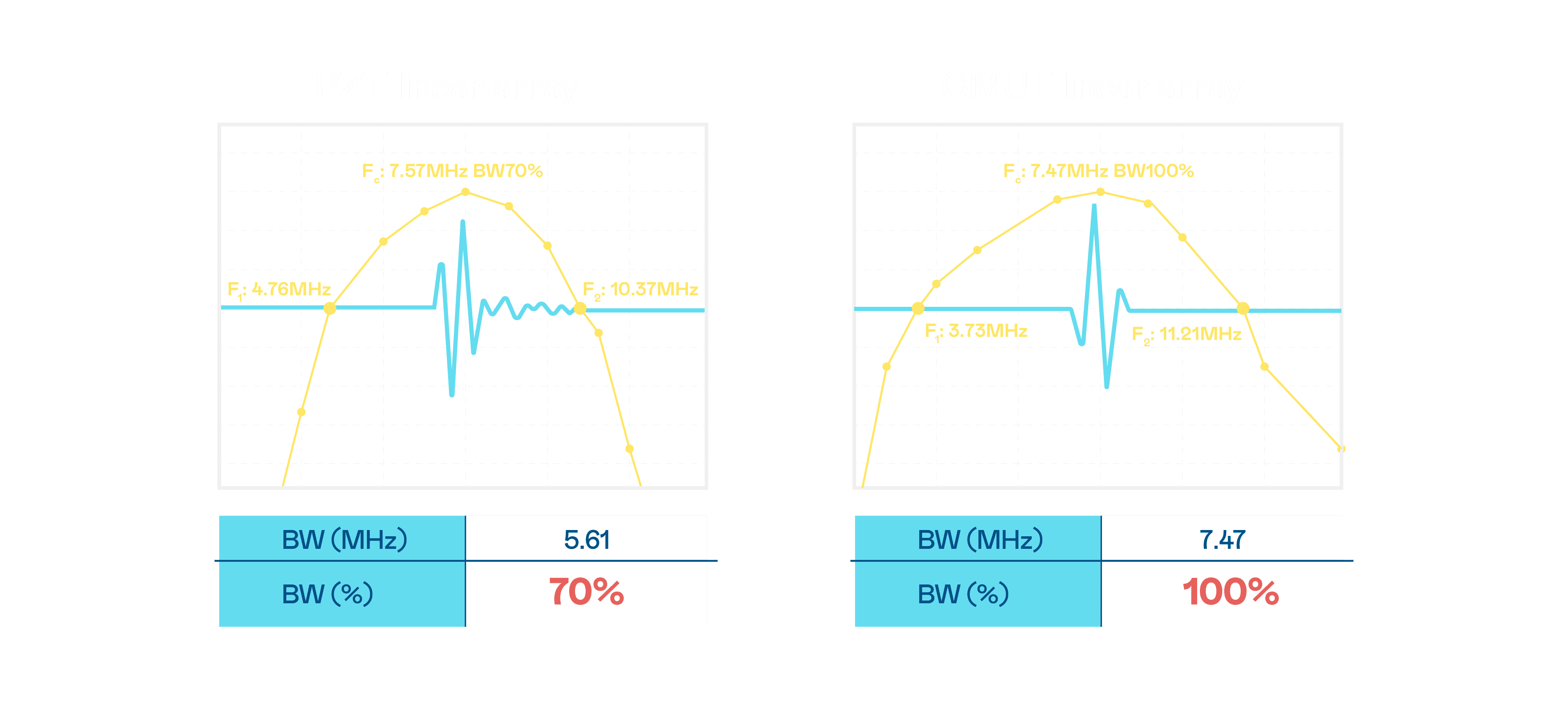 超音波影像的解析度高低,,,,首先取决于探头能发出的讯号频宽。。优游UB8 CMUT 可提供高清晰的超音波讯号,,,,提供高频宽、、、高灵敏度、、、、影像纹理细节更高的超音波影像,,协助医护人员缩短影像判读时间及利用精准的医疗影像进行诊断。。。。